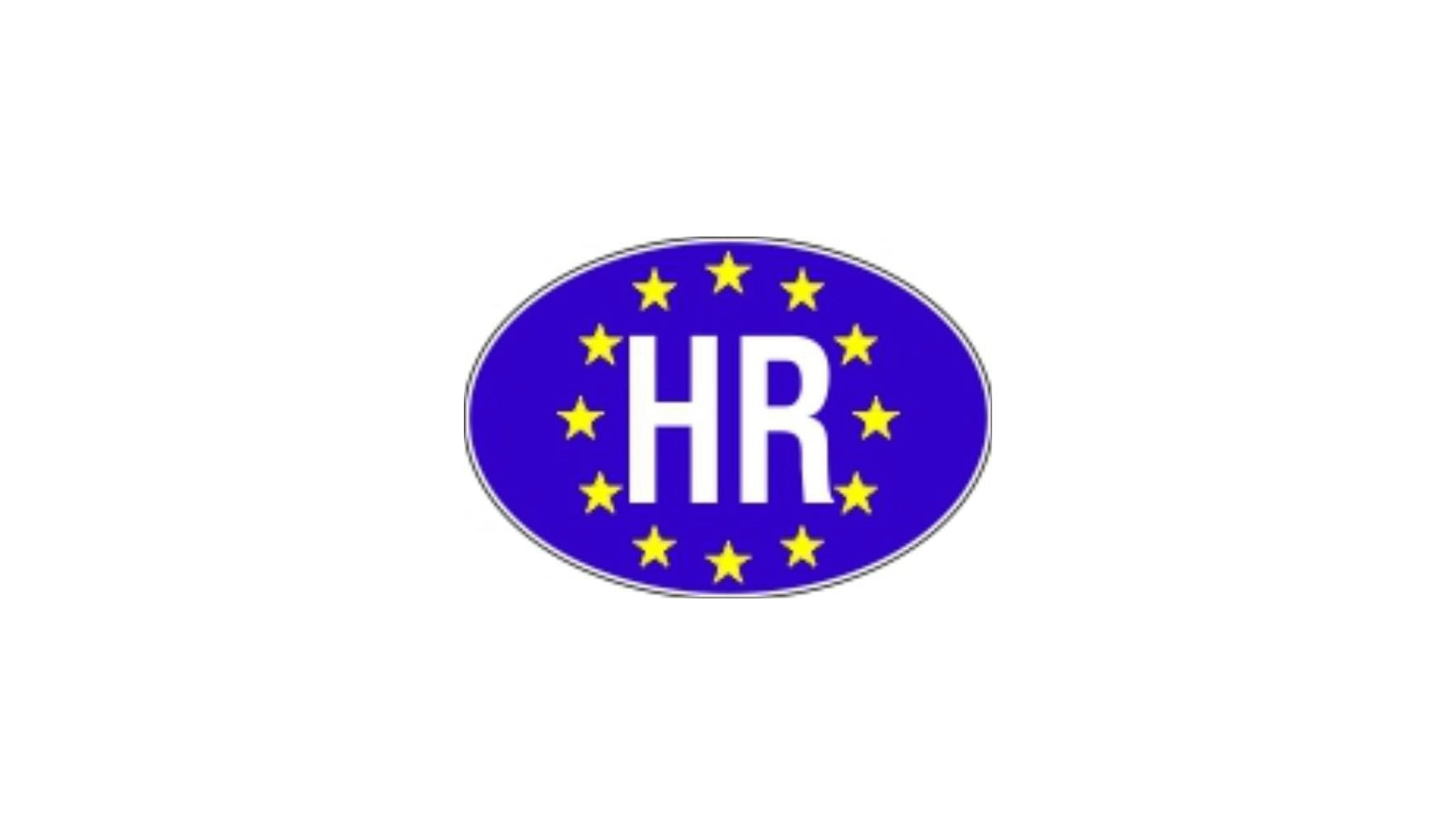 • Prepoznatljiv "HR" natpis na plavoj podlozi sa žutim zvjezdicama