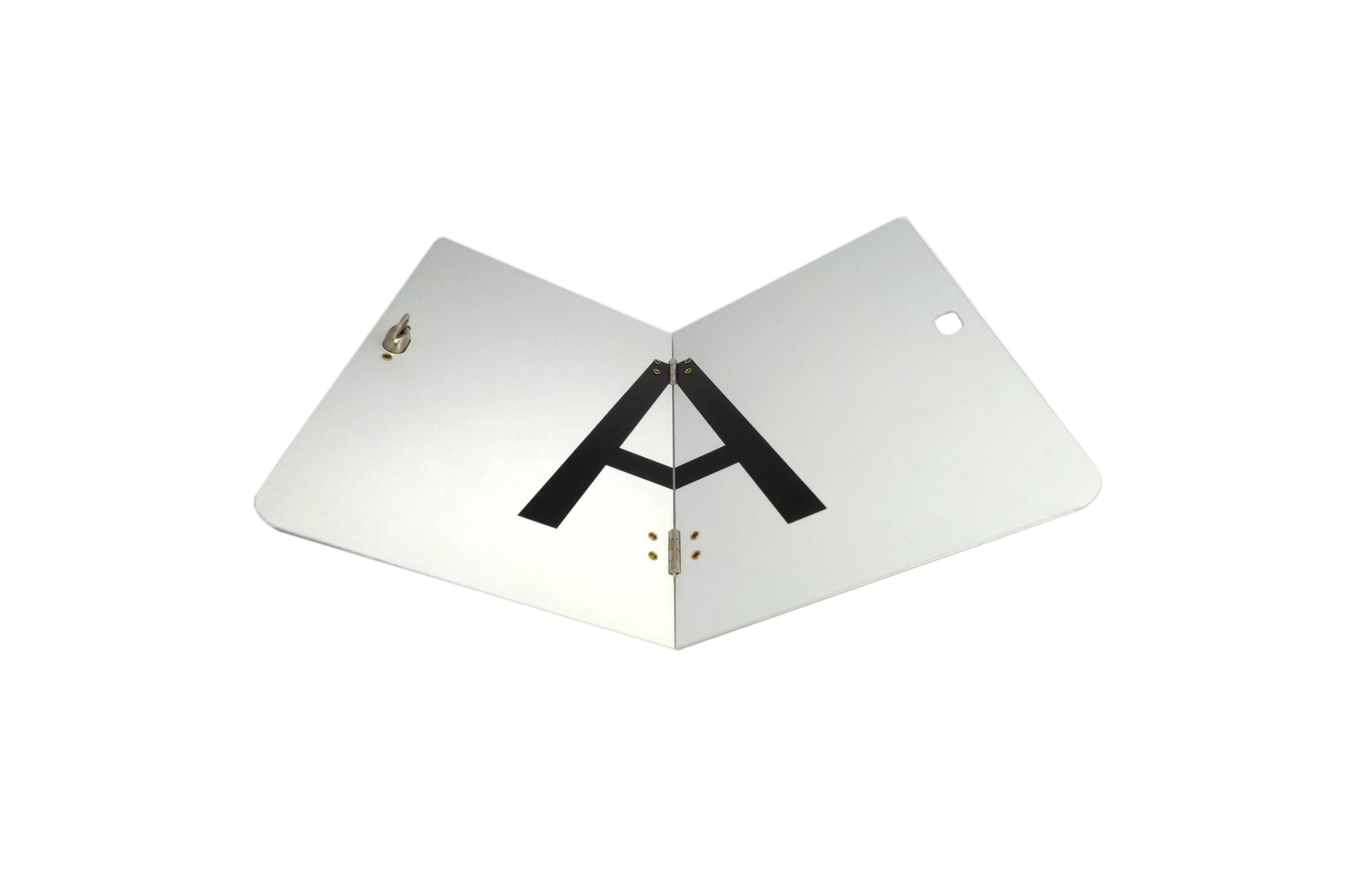 - Preklopna reflektirajuća tabla – Izrađena od aluminija debljine 1 mm, izdržljiva i otporna na vremenske utjecaje. Preklopni dizajn omogućuje jednostavno sklapanje kada oznaka nije potrebna, bez ometanja svakodnevnog prometa.