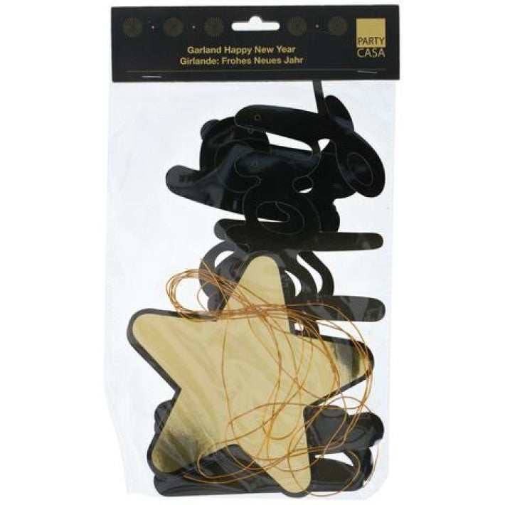 Make your New Year's Eve celebration truly unforgettable with this eye-catching Happy New Year party banner! Measuring 300 x 10 cm, it's big enough to stand out in spacious venues and instantly set a festive mood. The elegant gold color and star accents at both ends add a glamorous touch to any New Year’s event.