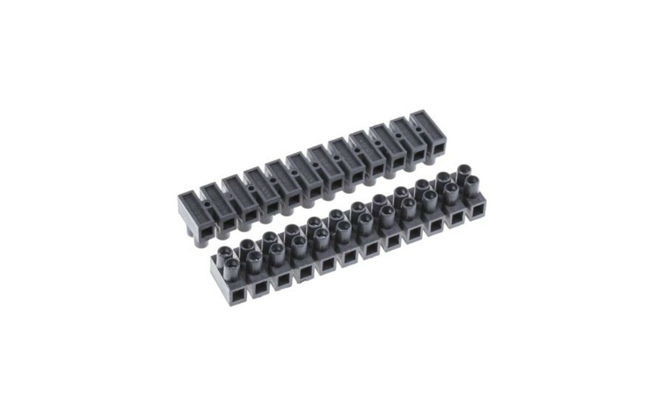 Ensure safe and secure electrical connections with this 12-pole terminal block, designed for 6 mm² wires. Commonly referred to as a "chocolate bar" connector, this versatile component is essential for both industrial and household electrical systems. It allows for quick, stable wire connections without the need for soldering or special terminals.