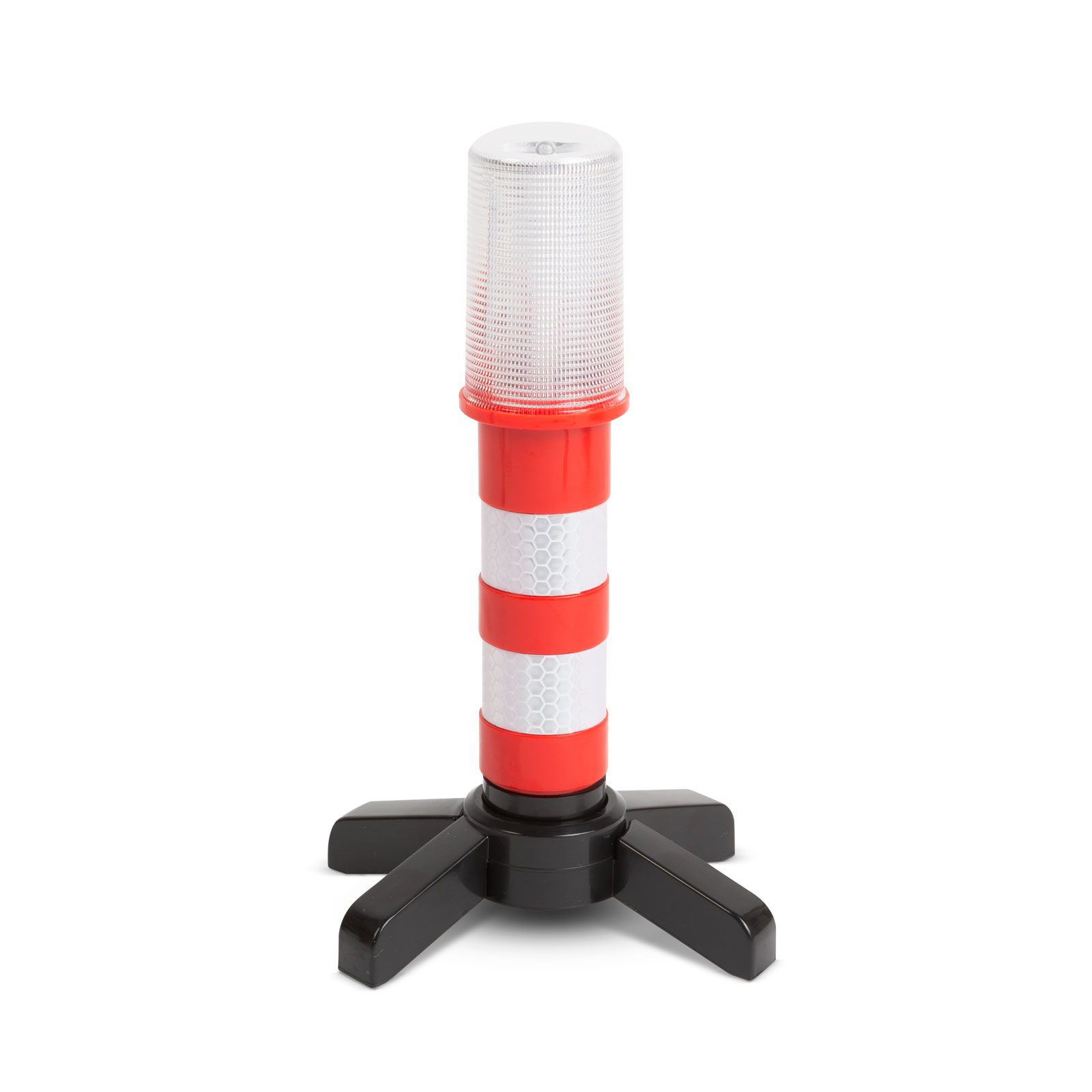 • Three light modes: Flashing red for emergencies, steady red for prolonged warnings, and steady white for use as a work light during repairs or tire changes.