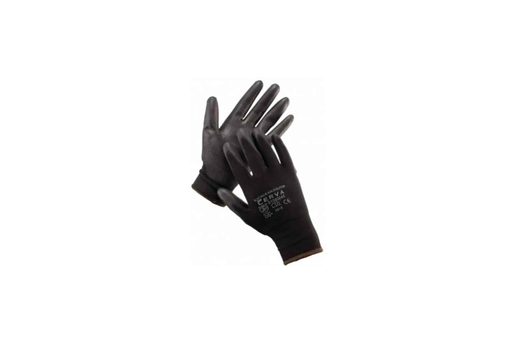 - Revestimiento de PU en la palma: La palma recubierta en poliuretano negro mejora el agarre y la resistencia al desgaste, facilitando la manipulación de piezas pequeñas o superficies lisas, tanto en ambientes secos como ligeramente húmedos.
