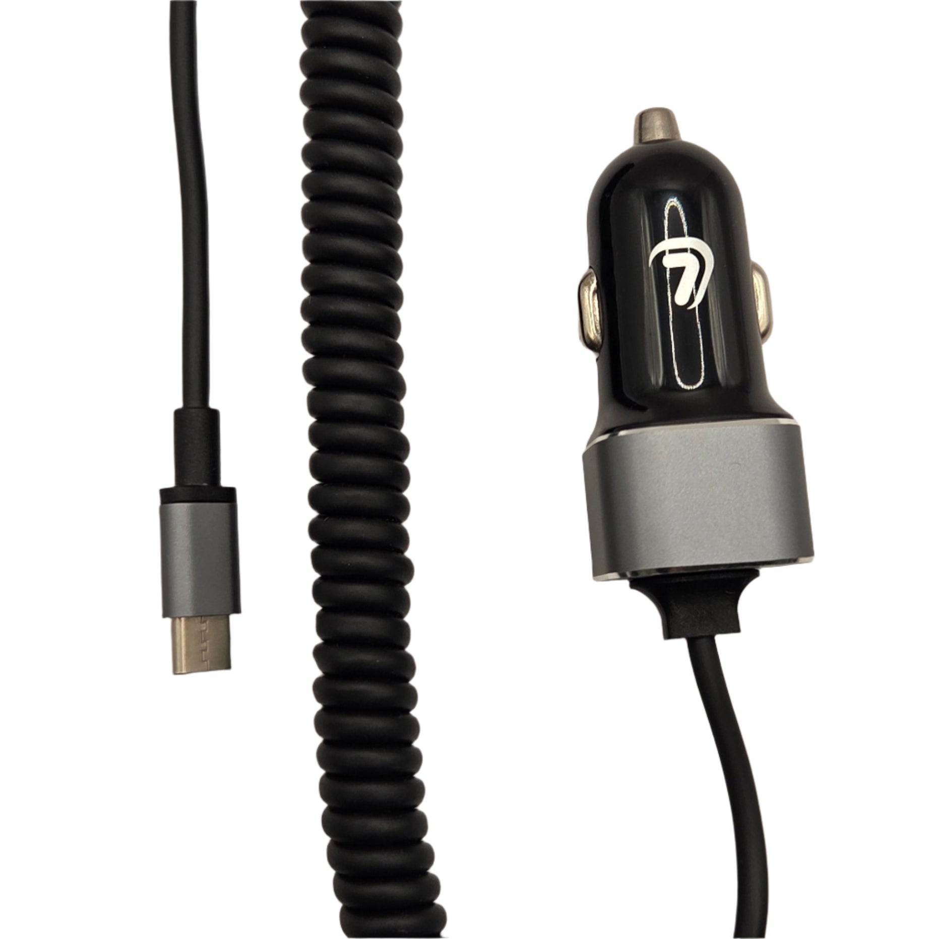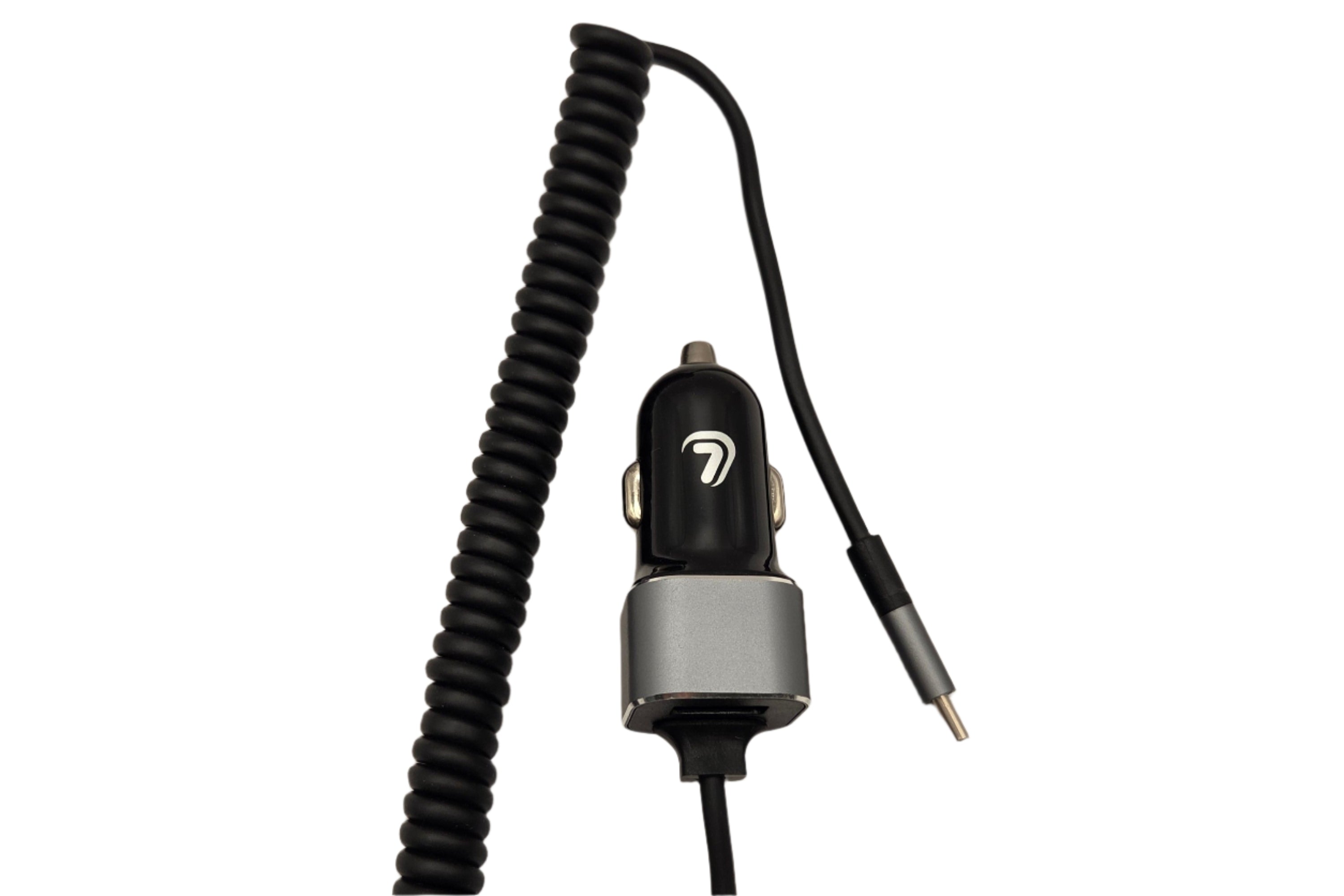 Caricabatterie USB-C per auto con cavo spiralato 150 cm – 3000 mA