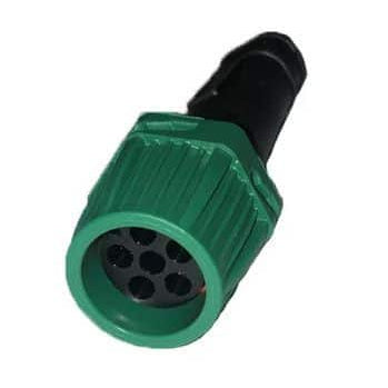 Connettore per lampada dotato di 6 poli, ideale per collegamenti elettrici sicuri e pratici. Il sistema di chiusura a baionetta assicura un aggancio stabile e veloce. Realizzato in colore verde, questo connettore è pensato per facilitare l'identificazione e l'installazione nei sistemi di illuminazione.