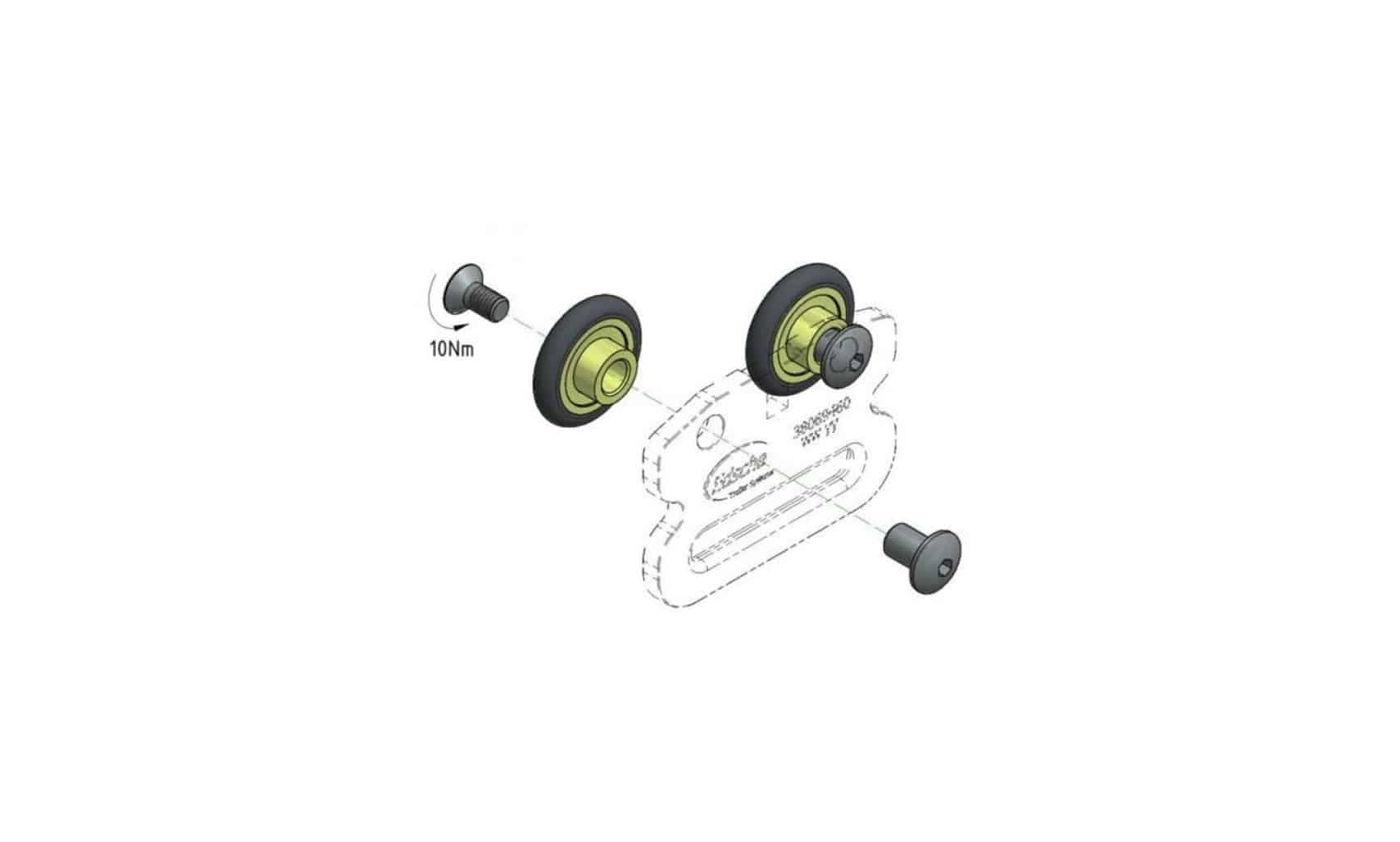 Standardizirana velikost olajša namestitev in zamenjavo, zato je kolo primerno za večino ponjavnih sistemov. Priporočena pritrditev z navorom 10 Nm zagotavlja trden in stabilen oprijem.